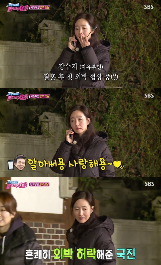 잠시 후 청춘들은 저녁 준비를 위해 나왔다. 그때 김국진에게 전화가 왔고 강수지는 몰래 뒤로 나와 전화를 받았다. 일상 대화를 나누던 강수지는 외박 계획을 전했고, 김국진은 "알았어요. 사랑해요"라며 흔쾌히 허락했다.