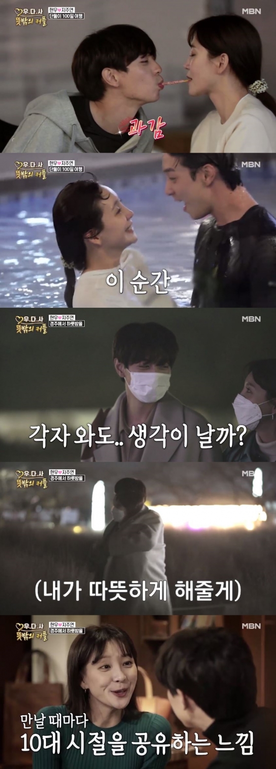 2일 방송된 MBN '우리 다시 사랑할 수 있을까3-뜻밖의 커플'('우다사3')에서는 현우, 지주연 커플이 100일 기념 경주 여행을 떠나는 모습이 그려졌다. 두 사람은 신라 유적지를 산책하며 밀담을 나눴고 벤치에 앉아 첫 만남 당시를 떠올렸다.