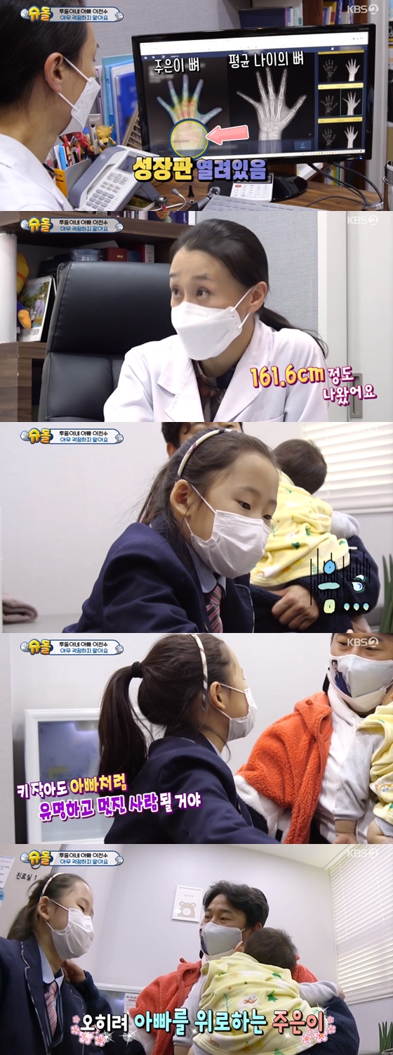 6일 오후 방송된 KBS 2TV 예능 프로그램 '슈퍼맨이 돌아왔다'에서는 이천수가 8살 딸 주은이의 성장판 검사를 하는 장면이 그려졌다.