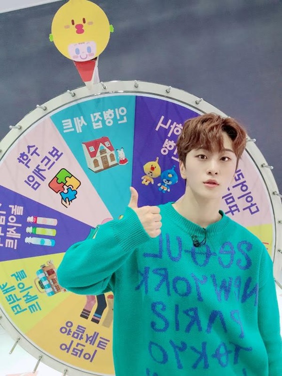 공개된 사진 속 진권은 EBS 대표 장수 어린이 프로그램 생방송 '톡!톡! 보니하니!' 스튜디오 돌림판 앞에서 사진을 찍으며 홍보요정으로 활약하고 있다. 카메라를 향해 미소 띤 진권의 훈훈한 외모가 시선을 사로 잡는다.
