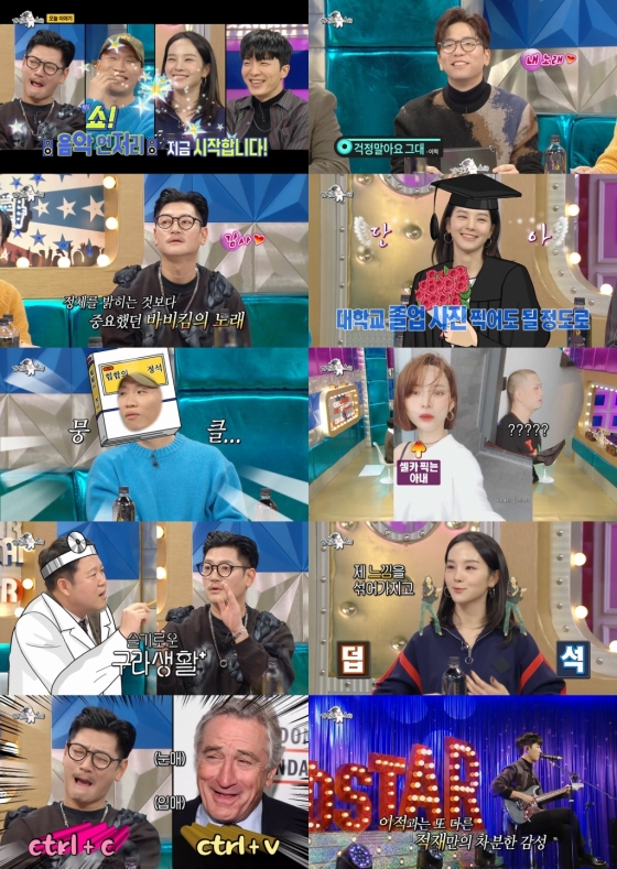 7년 만에 '라디오스타'에 출연한 바비킴은 욱 할배적 면모와 허당미를 뽐내며 예능 늦둥이 활약을 펼쳤다. 군시절 비화와 아빠美를 방출한 개코, 랩과 걸그룹 댄스로 반전매력을 뽐낸 송소희, 고막 남친의 매력으로 안방을 달달한 감성으로 채운 적재까지, 꽉 찬 매력으로 눈길을 사로잡았다.
