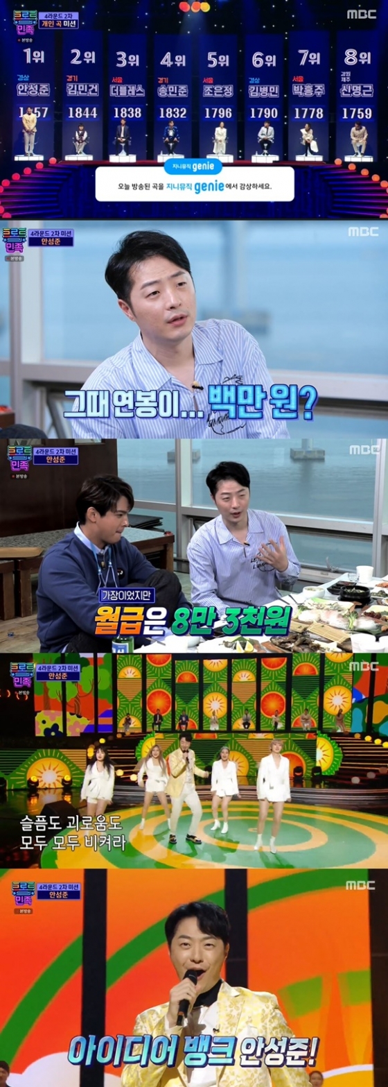 이어 안성준은 "그때 연봉이 백만 원? 집안에 가장이었지만 월급이 8만 원 남짓이었다. 어머니가 어깨가 좋지 않아서 수술비를 마련해야 했는데 돈을 마련할 길은 없고 여기저기 대출하러 다녔다. 그때는 포기하고 싶었다"며 힘들었던 시절을 떠올렸다.