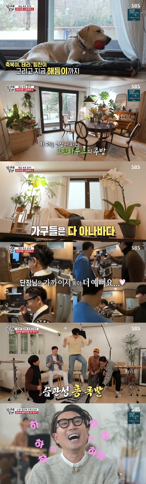 정재형은 "정원이 있는 집을 봤을 때 이런 집이 주는 행복이 있구나 하는 생각이 들어서 식물을 많이 키우게 됐다"고 말하며 초록빛 가득한 뒷마당까지 선보여 멤버들을 감탄케 했다. MBC '구해줘!홈즈!'를 진행하고 있는 양세형은 "집에 트렌드가 다 있다. 너무 좋다"며 감격했지만, 김동현은 난로에서 떨어지지 못하며 집 안으로 들어가고 싶어해 웃음을 안겼다.