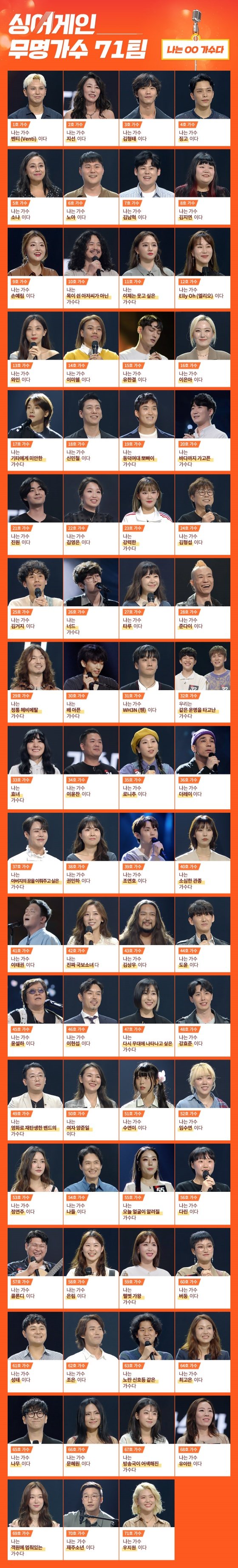 '싱어게인' 본선 71팀 이름 공개.."이 가수를 잊지 마세요"
