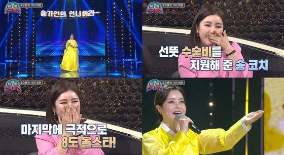 이후 황홍비는 '개나리 처녀'를 구성진 보이스로 열창하며 8도 올스타를 받아냈고, 송가인은 울먹이며 "내가 먼저 잘 됐으니까 내가 이끌어줄게라는 말을 했었는데, 좋은 결과가 나와서 너무 좋다"고 친자매 이상의 우애까지 자랑했다.