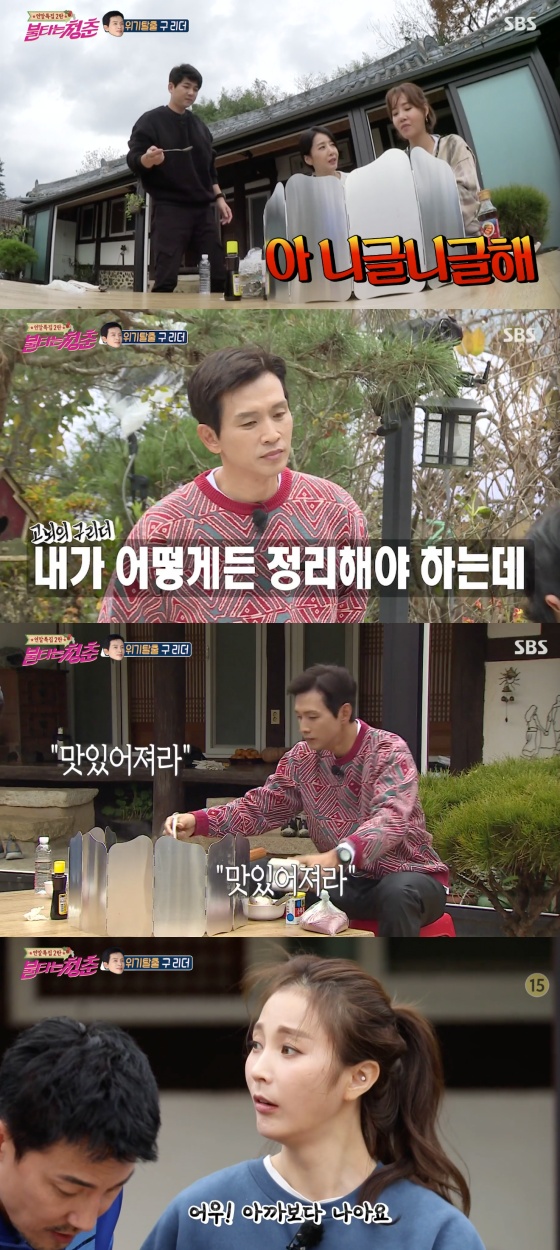배우 구본승이 '불타는 청춘'에서 새로운 리더에 등극하며 실패한 요리를 수습했다.