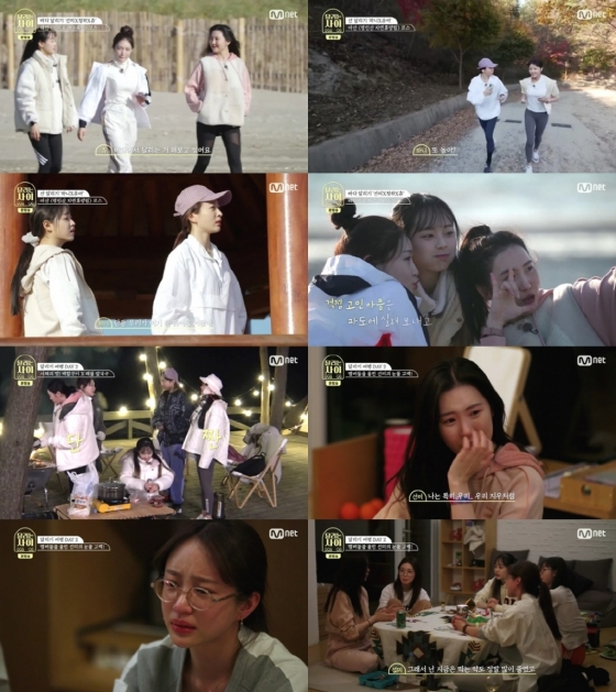 잠들기 전 다시 거실에 모인 멤버들은 러닝북에 오늘의 달리기를 기록했다. '감정 카드'를 하게 된 멤버들은 다양한 감정들이 적힌 카드 중 끌리는 카드를 뽑아 카드에 적힌 질문이나 감정의 정의에 대해 이야기를 나누는 시간을 가졌다. '여유로운'을 뽑은 유아는 "여유로움이 느껴질 때 당신은 무엇을 하나요?"라는 질문을 보고 한번도 그런 적이 없어서 충격을 받았다는 말을 전했다. '피곤한', '긴장한', '답답한' 세 가지를 뽑은 청하는 하루에 세 번은 얘기하고 세 번은 느끼는 감정인 것 같다고 말해 안쓰러움을 자아냈다. 피곤하다는 말을 자주하고 잘 때도 긴장하며 잔다는 청하는 올 해가 너무 답답했다는 말 끝에 '달리는 사이' 촬영이 가장 답답하지 않은 순간이었다고 전했다.