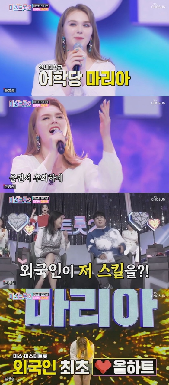 "K팝에 빠져서 한국에 왔다가 트로트에 빠졌다"고 소개한 마리아는 현재 연세대학교 어학당에 다니는 외국인 학생이었다.