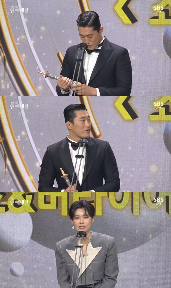 이날 쇼버라이어티 부문 우수상을 수상한 김동현은 "대박이다. 아니 제가 이런 상을 받는다는 게. 스무살 때부터 격투기 하면서 한 번도 챔피언, 우승 이런 거 못 해봤는데 이렇게 상을 타서 신기하고 말이 안 되는 것 같다. 감사하다. '집사부일체'에서 함께 할 수 있어 너무 영광이고 매 순간 순간 너무 감사하다. 승기 대장, 형 같은 동생 성록, 은우, 친구 같은 동생 세형이까지 너무 영광이고 모든 제작진분들 감사하다. 둘째 나오는데 함께 해주지 못해서 미안한 아내 사랑하고, 단우야 아빠 말도 안되는 상 탔다. 아빠 챔피언이다. 저한텐 이게 챔피언이다"고 말했다.