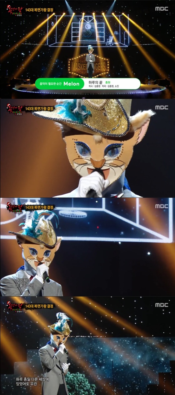 '복면가왕' 부뚜막 고양이가 7연승에 성공, 143대 가왕에 등극했다. 부뚜막 고양이는 故 종현의 곡 '하루의 끝'을 선곡해 위로를 안겼다.