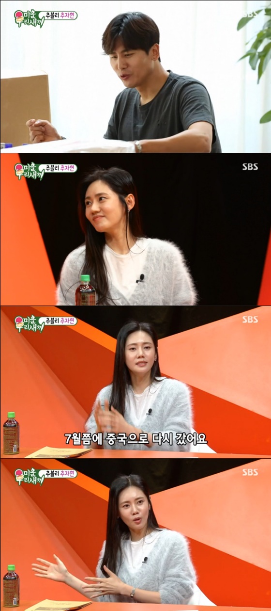 추자현은 "아기는 기본적으로 다 씻기고 한다. 7월 쯤에 중국으로 다시 갔다. (코로나) 초창기에 넘어 와서 같이 있다가 저 드라마 촬영하는 내내 외조해주고 넘어갔다"라고 했다.