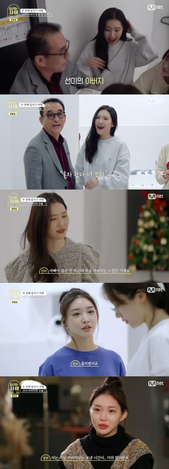 선미의 아버지가 '달리는 사이'에 깜짝 등장해 대게를 선물했다.