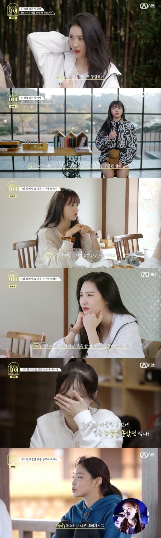 23일 오후 방송된 Mnet 예능프로그램 '달리는 사이'에는 선미와 하니, 유아, 츄가 함께 달리는 장면이 담겼다.