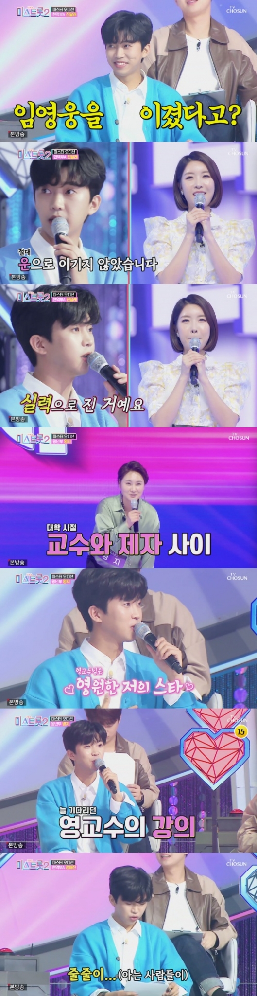 가수 임영웅이 '미스트롯2'에서 과거 인연들을 만나며 애틋한 감정을 표현했다.