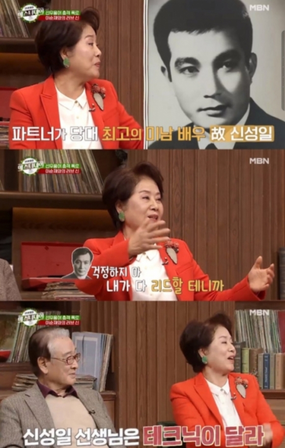 이어 그는 "1977년 영화 '산불'을 같이 찍었다. 어떻게 촬영하나 고민했는데, 베드신 촬영날 머리도 아프고 얼굴도 노래지고 죽겠더라. 거기에 상대 배우가 신성일 선생님이었다"며 "그런데 故신성일이 '걱정하지 마. 내가 다 리드할테니까'라고 말했다. 밤에 보니까 선생님하고 신성일 선생님하고 차이가 있더라. 선생님이 다른 건 다 좋으신데 러브신은 안된다. 요새 느낀 게 역시 연기자들은 경험이 있어야 한다는 거다"라고 말해 이순재를 당황케했다.