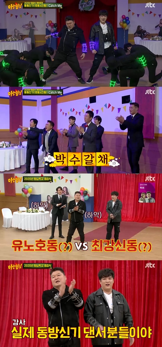 방송인 강호동과 슈퍼주니어 신동의 '동동신기'가 종업식 축하 무대를 선보였다.