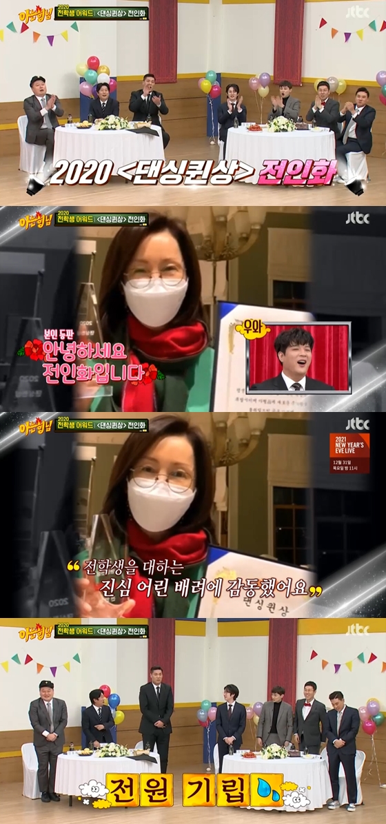 전학생 어워드의 첫 상, 댄싱퀸상의 주인공은 묵은 한을 다 풀어낸 전인화였다. 전인화는 "아는형님에서 저에게 댄싱퀸상이라는 큰 상을 주셨다. 그 날 여러분들이 저를 춤추게 하셨다"고 고급진 소감을 전했다.