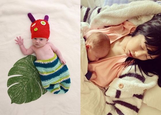 공개된 사진 속 사유리의 모유 수유를 하다 잠든 듯 가슴에 아이를 안고 잠들어 있는 모습이다.