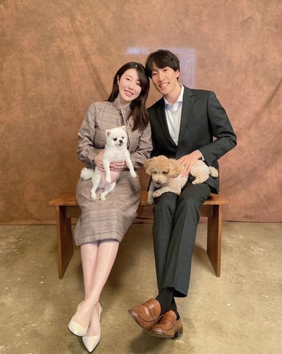 공개된 사진 속 나비는 남편과 반려견 2마리와 함께 환하게 웃고 있다. 선남선녀의 환한 미소가 훈훈한 분위기를 자아낸다.
