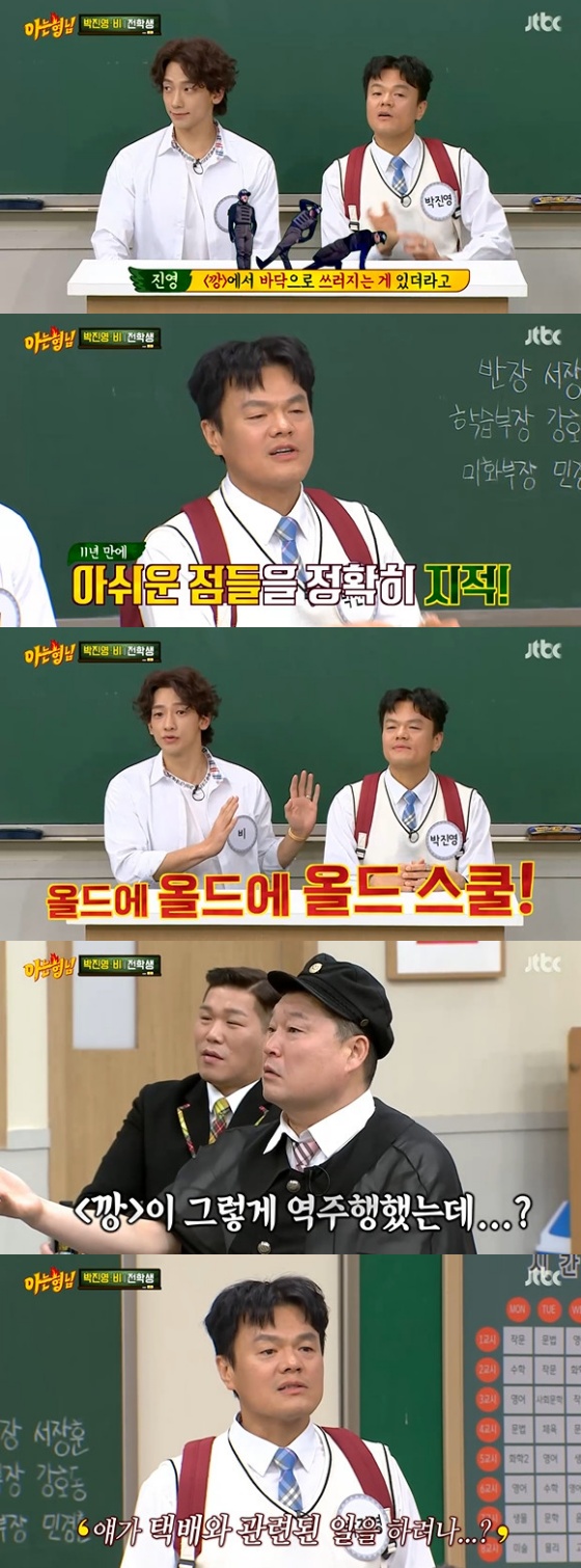 2일 방송된 JTBC 예능 프로그램 '아는 형님'에는 가수 박진영과 비가 전학생으로 출연했다.