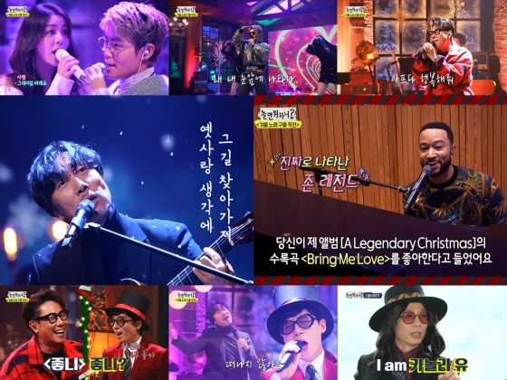 2일 방송된 MBC '놀면 뭐하니?'(연출 김태호 김윤집 장우성 왕종석 작가 최혜정)에서는 '겨울노래 구출 작전' 2번째 이야기가 공개됐다. 에일리-김범수-윤종신에 이어 존 레전드-이문세까지 레전드 가수들이 등판해 시린 마음을 달래주는 역대급 겨울송 무대로 새해를 화려하게 열었다.