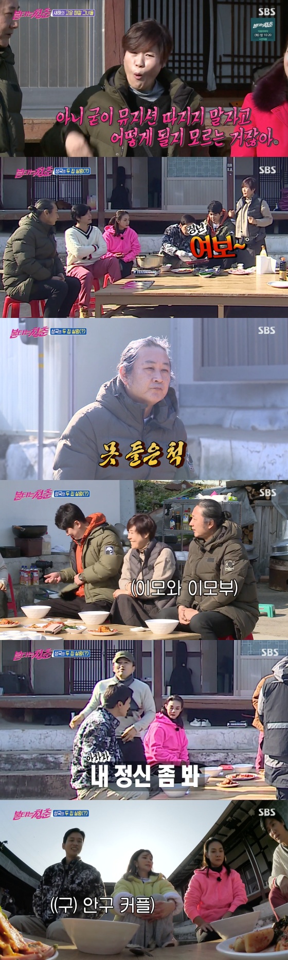 5일 오후 방송된 SBS 예능프로그램 '불타는 청춘'에는 오랜만에 만난 공식 커플들의 이야기가 담겼다.