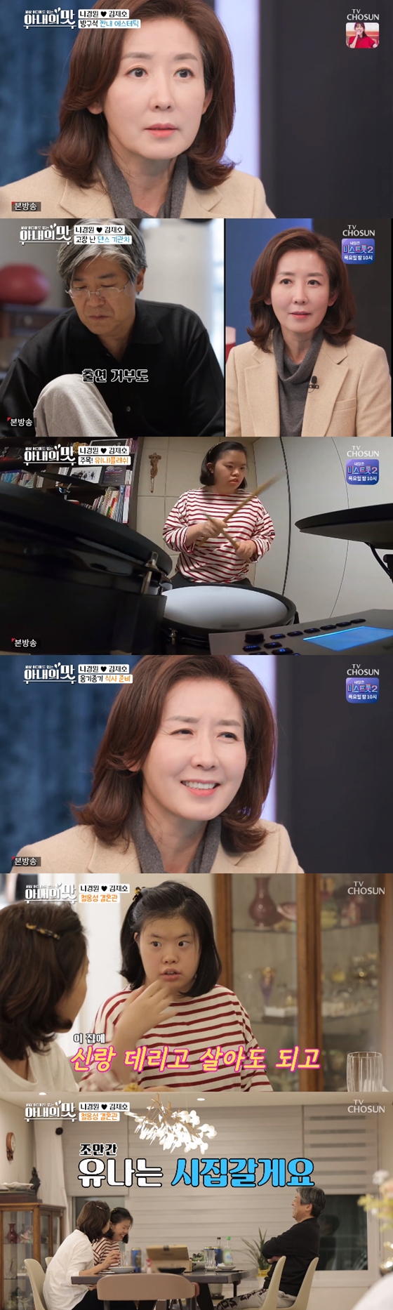 이날 '아내의 맛'에선 나경원 전 의원과 남편 김재호 판사 그리고 딸이 함께 하는 일상이 공개됐다.
