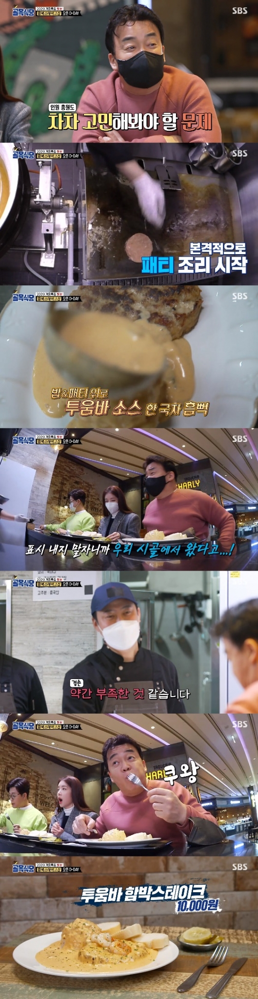 6일 방송된 SBS '백종원의 골목식당'에서는 필동 함박스테이크집이 하남 대형 쇼핑몰에 입점돼 오픈 첫날 백종원 김성주 정인선 든 3명으로부터 첫 주문을 받았다.