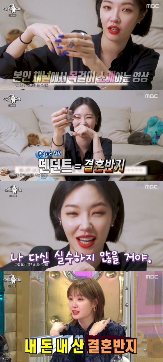 이날 출연한 김새롬은 결혼반지를 녹여 목걸이 펜던트를 만든 영상을 언급하며 "다시 연애하고 싶다"고 말했다.