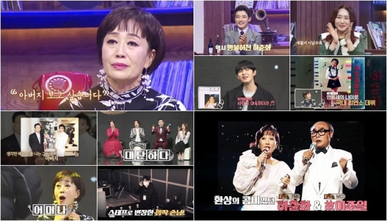 이어 하춘화는 남다른 끼를 갖고 있던 어린 시절, 아버지의 권유로 본격적인 음악을 시작해 만 6세의 나이에 데뷔한 사연을 털어놓았다. 60년 노래 인생의 길잡이가 됐던 아버지를 추억하던 하춘화는 장은아의 '무죄' 무대를 보다가, 아버지에 대한 그리움으로 눈물을 쏟아내 보는 이들마저도 눈물짓게 만들었다.