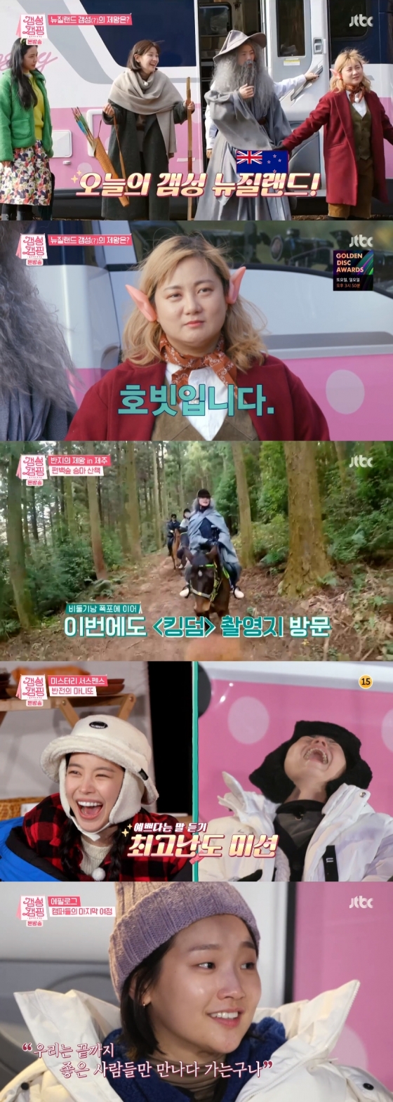 지난 8일 방송된 JTBC '갬성캠핑'(기획 황교진 연출 이나라)에서는 제주도에서 뉴질랜드 콘셉트의 마지막 여행기가 그려졌다. 여행과 동시에 갬성캠퍼 안영미, 박나래, 박소담, 솔라, 손나은과 캠친 은지원, 송민호는 은밀하게 마니또 미션을 수행해 흥미진진한 전개가 펼쳐졌다.