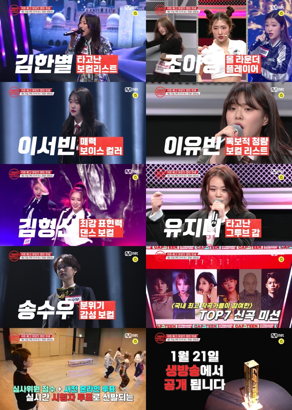 21일 엠넷 '캡틴(CAP-TEEN)'의 파이널 무대가 방송된다. 치열한 경쟁을 뚫고 파이널에 진출한 김한별, 김형신, 송수우, 유지니, 이서빈, 이유빈, 조아영 등 TOP7이 '캡틴'의 자리를 두고 마지막 무대를 선보인다.