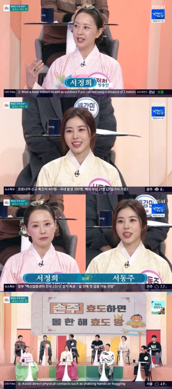 22일 오전 방송된 '아침마당'에서는 '새로운 도약, 2021 효도는 나의 것'이라는 주제로 서정희, 서동주가 출연했다.