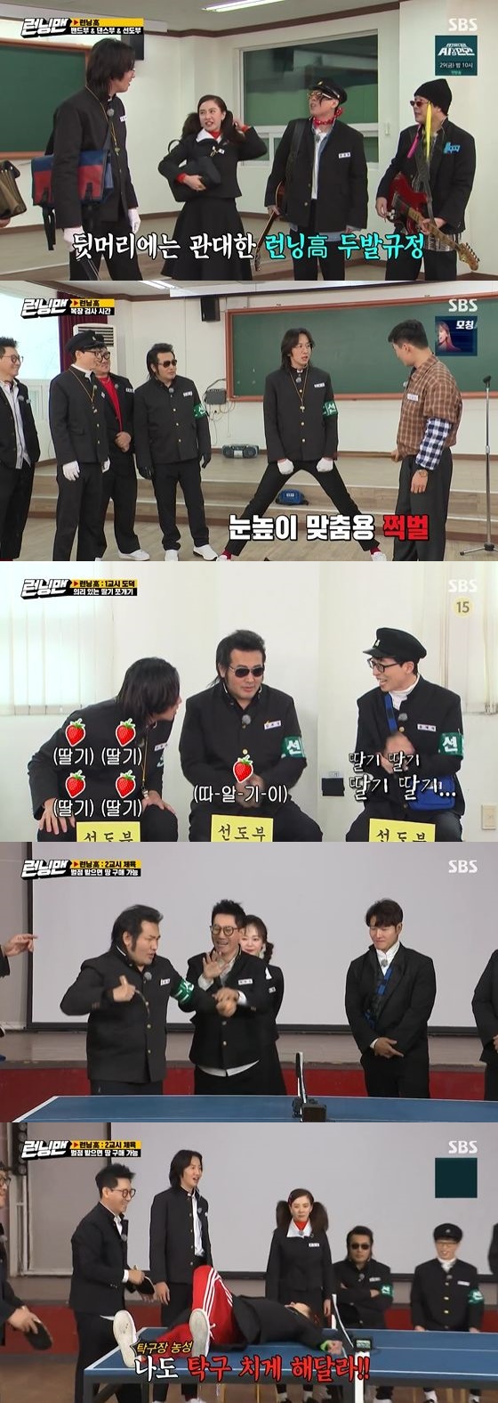 하하X송지효X양세찬은 밴드부로, 김종국X지석진X전소민은 댄스부로, 유재석과 이광수는 선도부로 각각 변신한 가운데, 데프콘은 댄스부, 김보성은 선도부의 80년대 고등학교의 모습을 재연했다.