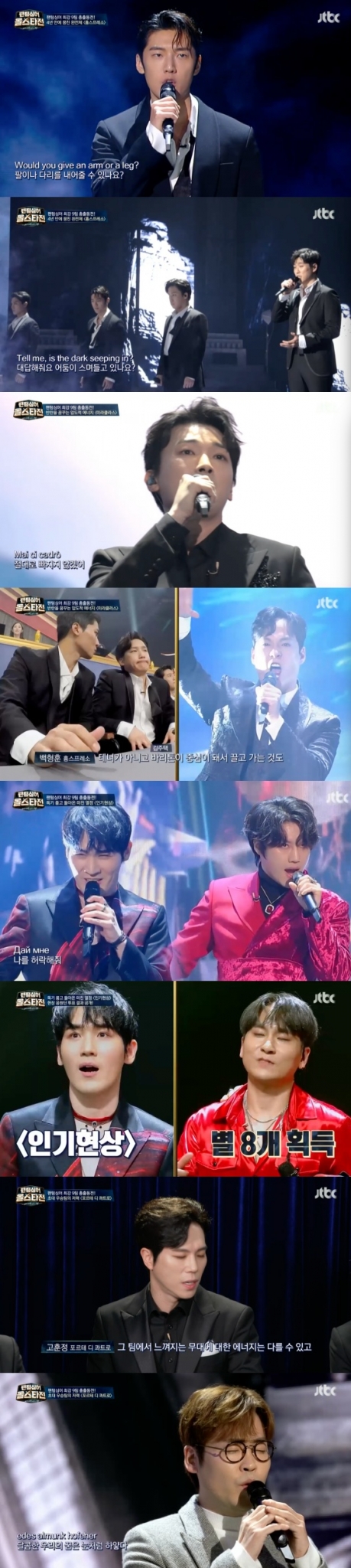 지난 26일 방송된 JTBC 음악 예능프로그램 '팬텀싱어 올스타전'에는 포르테 디 콰트로, 흉스프레소, 포레스텔라, 미라클라스, 에델라인클랑, 라포엠, 라비던스, 레떼아모르 등 역대 '팬텀싱어' 각 시즌 1위, 2위, 3위 팀이 모여 왕중왕전을 펼쳤다.