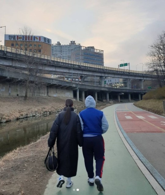 공개 된 사진 속 정시아는 아들 준우군과 함께 걷고 있다. 올해로 13살인 준우는 엄마 정시아보다 훨씬 큰 키와 체격을 자랑하고 있다.