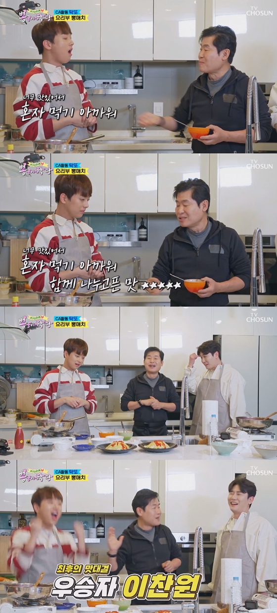 TV조선 ‘뽕숭아학당’ 3일 방송에서는 영탁과 이찬원이 이연복 세프집을 방문해 요리를 배우면서 수제자 대결을 했다.