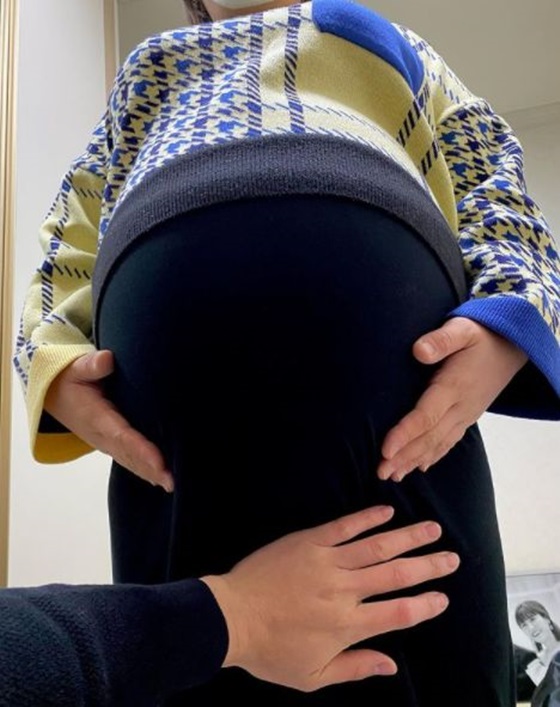 공개된 사진에는 출산을 앞둔 권미진의 모습이 담겨 있다. 빵빵하게 잔뜩 불어난 배가 보는 이들의 눈길을 끌었다.