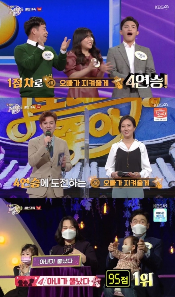 '노래가 좋아'에서 '오빠가 지켜줄게' 팀이 1점 차로 4연승에 성공했다.