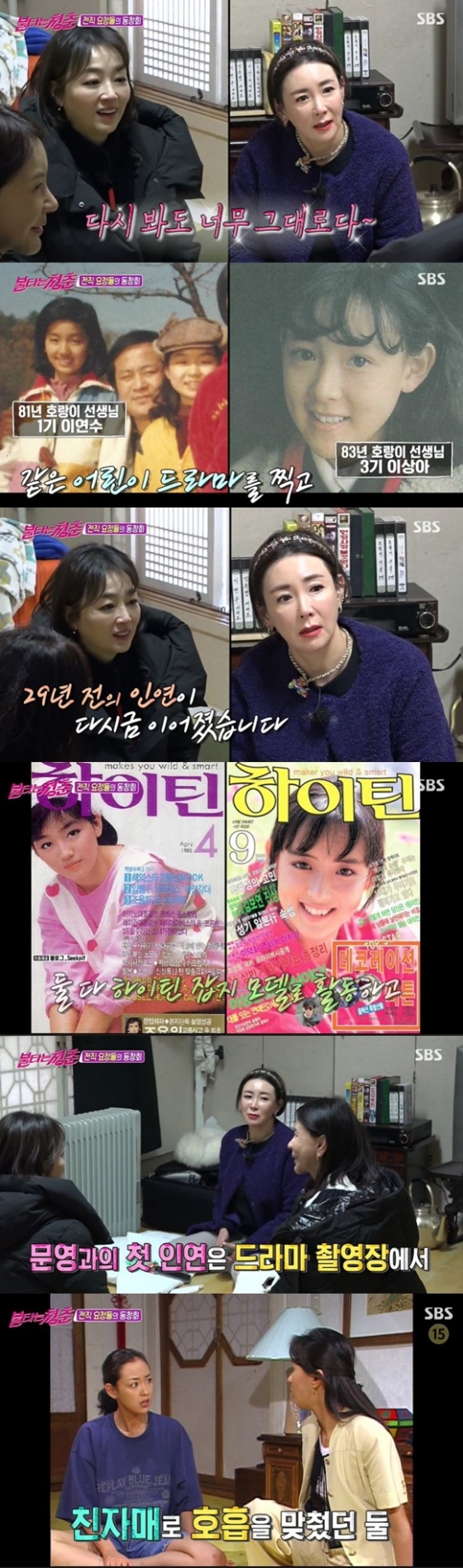 이상아와 강문영은 1994년 드라마 '좋은 걸 어떡해'에서 친자매로 호흡을 맞췄고 당시 "눈만 마주쳐도 꺄르르 웃었다"며 소녀 감성으로 돌아가 이야기보따리를 풀며 추억을 되새겼다.
