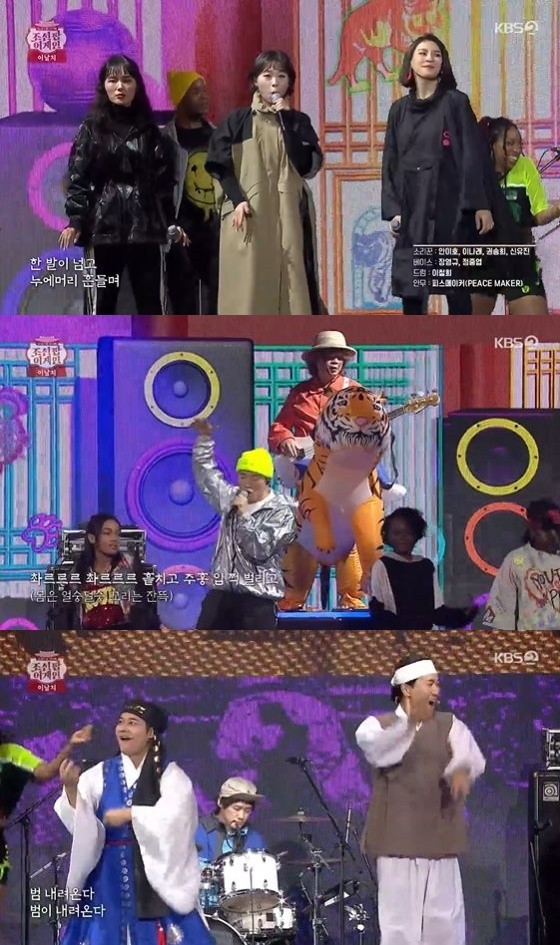 오프닝 무대는 작년 한해 큰 인기를 얻은 이날치의 '범 내려온다'였다. 이날치의 흥겨운 노래에 MC 전현무와 김종민도 '범 내려온다'의 안무를 따라하며 흥을 돋았다.