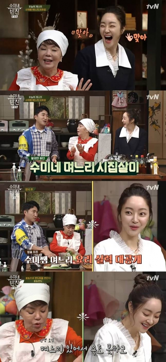 김수미는 "제작진이 게스트로 한 번 해달라고 사정하더라. 나는 정말 부담스럽다"고 말했고, 서효림이 등장했다. 김수미는 "쑥스럽다. 얘가(서효림이) 후배였을 때보다 며느리가 됐을 때 내가 언행이 굉장히 조심스러워진다"고 말했다.
