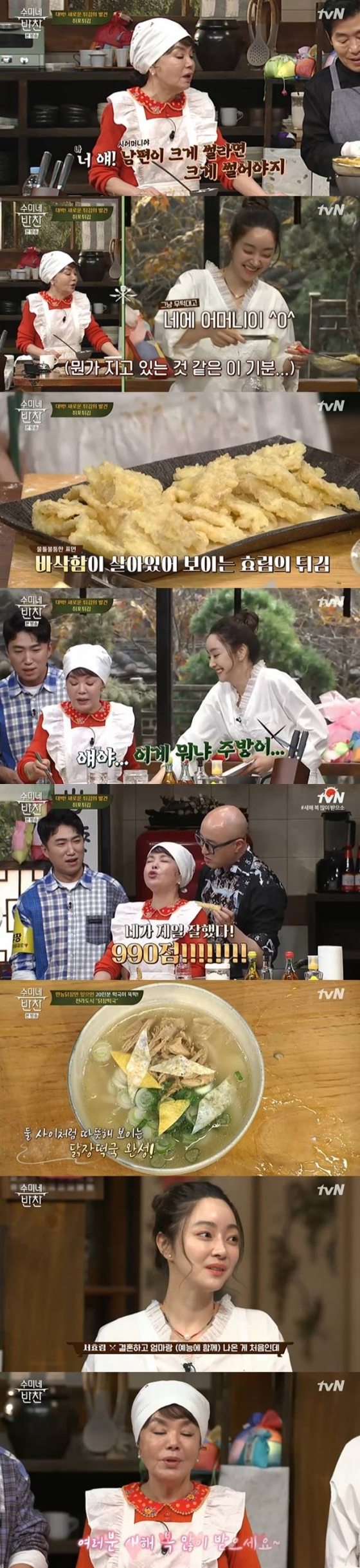 이어 출연진은 전라도식 닭장떡국을 만들었다. 서효림이 달걀지단을 못 만들자 김수미는 이연복을 향해 서효림에게 달걀지단 만드는 법을 알려달라면서 대파를 썰어주고 마무리를 도와줬다. 김수미는 서효림의 음식에 "싱겁다"면서도 "180점"을 줘 99점을 받은 이연복을 당황시켰다.