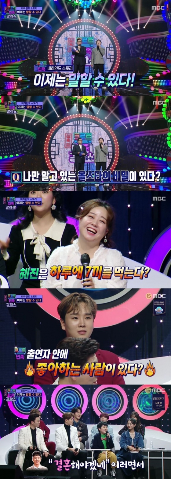 이날 두 번째 노래 대결 후 '이제는 말할 수 있다' 코너가 진행돼 출연진들은 그동안 밝힐 수 없었던 이야기를 털어놨다.