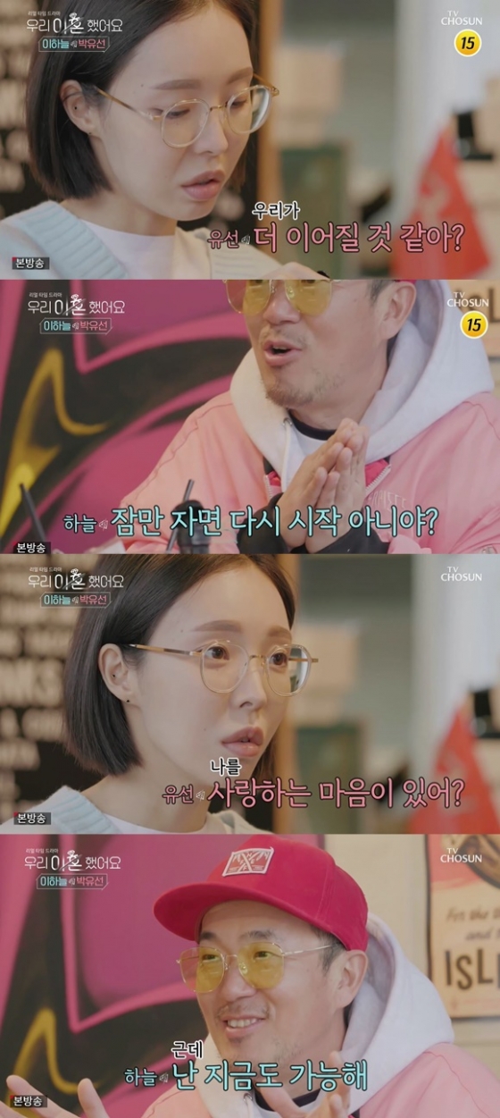 '우리 이혼했어요'에서 박유선이 '재결합설'을 두고 이하늘에게 사랑하는 마음이 있냐고 물었다.