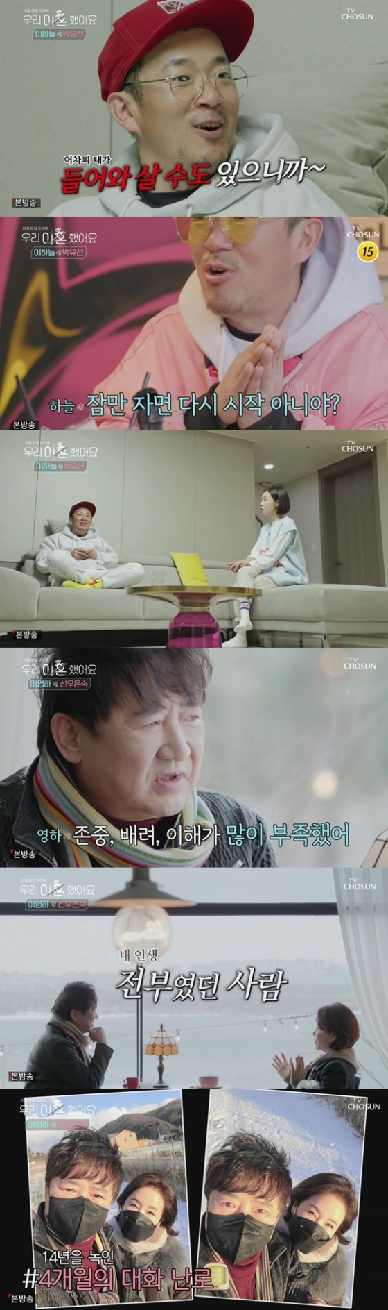 지난 15일 방송된 '우리 이혼했어요 - 시즌1' 마지막회에서는 재결합 의지를 드러내는 이하늘과 이영하의 이야기가 그려졌다.