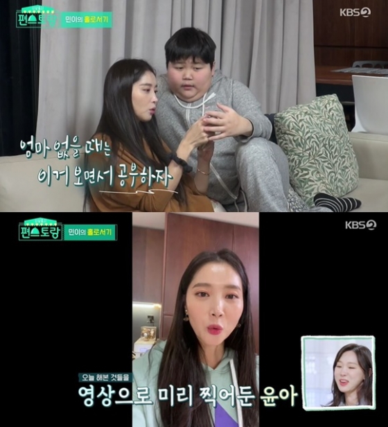 '신상출시 편스토랑'에서 오윤아가 증세를 앓고 있는 아들 민이에게 홀로서기 교육을 했다.