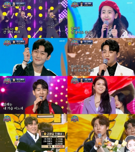 1, 2차 전문가 판정단 점수와 실시간 대국민 문자 투표 점수가 합산된 최종 결과, 진해성(총 8643점)이 금메달의 영예를 안았으며 은메달은 재하(5703점), 동메달은 오유진(5643점)이 거머쥔 데 이어 4위 신승태(5530점), 5위 김용빈(5529점), 6위 상호&상민(5272점), 7위 최향(5126점), 8위 한강(4972점)으로 순위가 확정됐다.