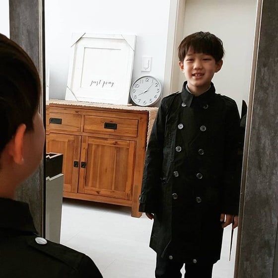 공개된 사진 속에는 리키 김 아들 태오의 모습이 담겼다. 태오는 거울 앞에 서서 미소를 짓고 있는 모습이다. 훌쩍 큰 태오의 모습은 세월이 흘렀다는 것을 실감케 했다.