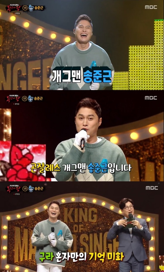송준근의 '복면가왕' 출연 목표는 바로 제2의 박성호가 되는 것이었다. 그는 "(박성호가) 요들뽕으로 활동을 하고 있다. 저는 바디 퍼커뽕이라고 몸을 두드리면서 하는 트로트 장르에 도전해보면 좋겠다 싶었다"고 밝혔다. 이어 "2월 1일에 '으라차차 내 인생'이라는 듀엣 앨범이 나왔다. 개가수가 아니라 개지션으로 인사드린다"고 덧붙였다.